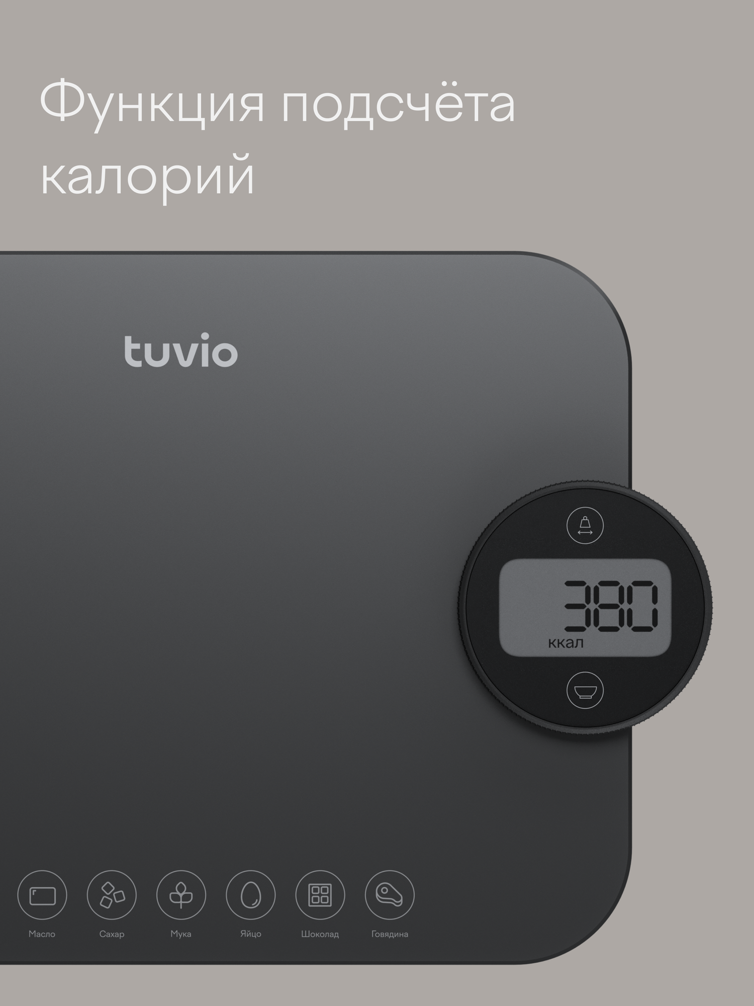 Весы кухонные, кинетические, с функцией подсчёта калорий, Tuvio TKS04F, серые: сравнение цен, характеристики, фото, актуальное наличие и цены.