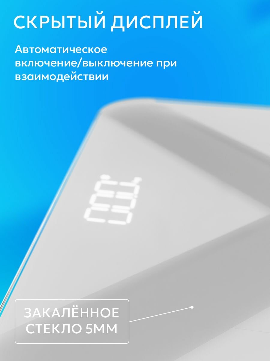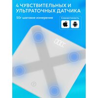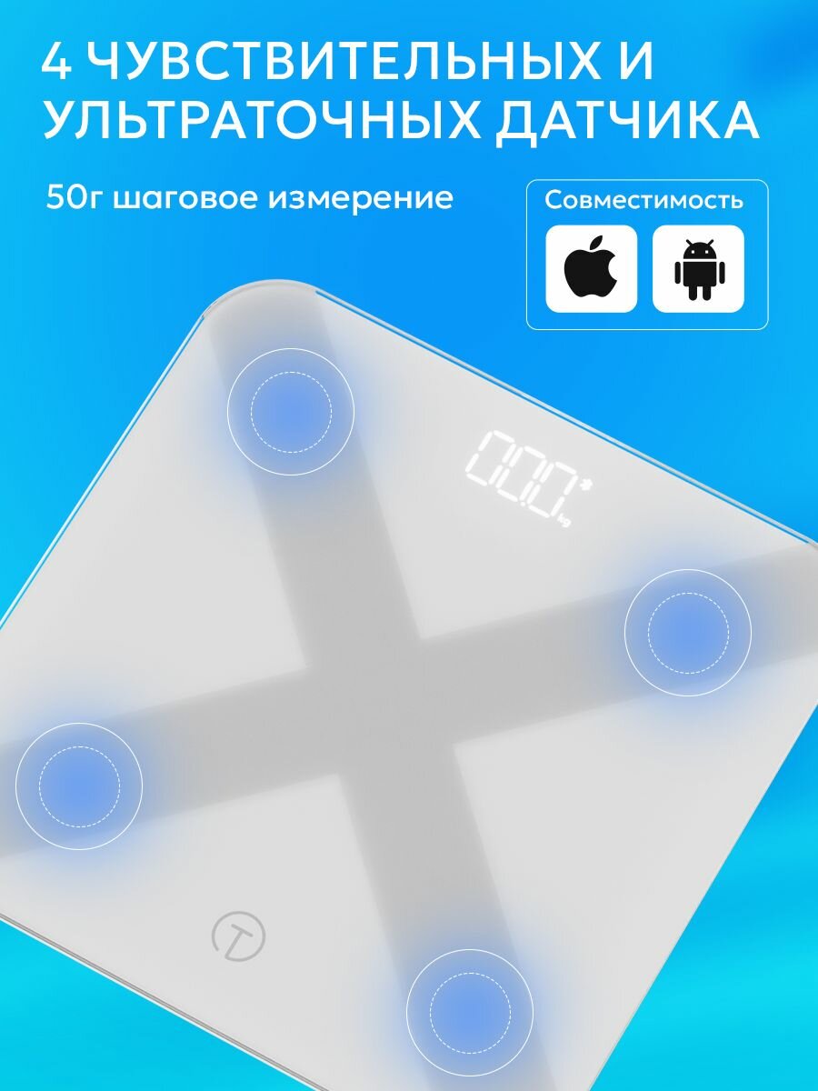 | Дополнительные функции | определение доли воды, определение доли жировой ткани, определение доли костной ткани, определение доли мышечной ткани, память, постановка цели, расчет ИМТ (BMI), расчет ежедневной нормы калорий |