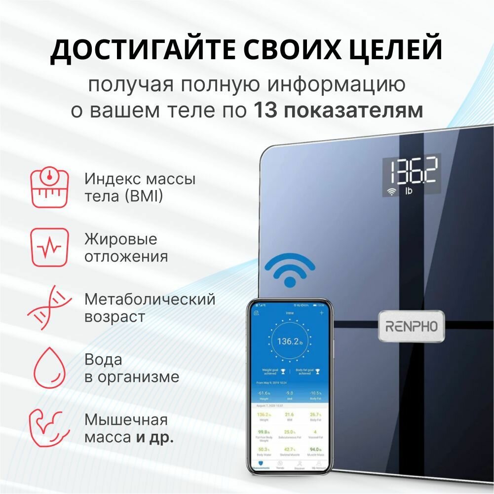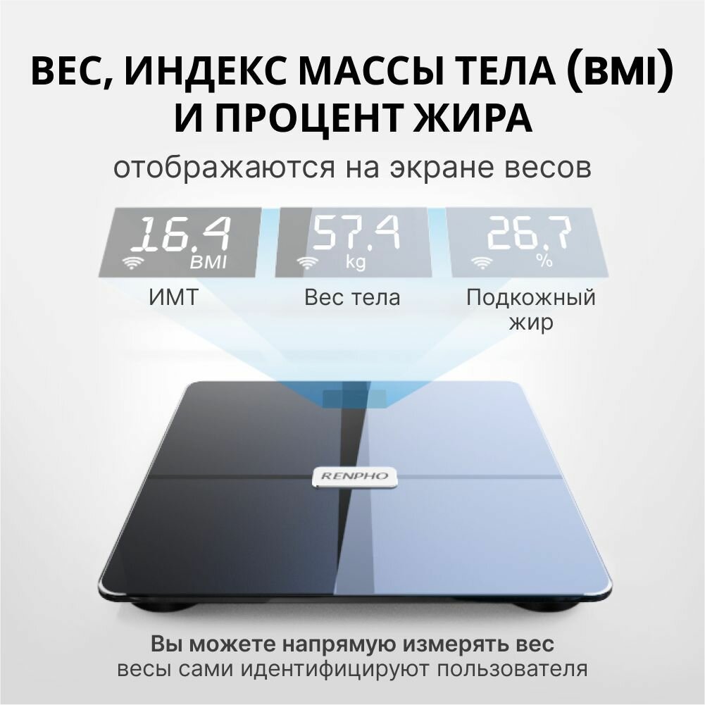 Электронные весы фиксируют и отслеживают каждое незначительное изменение с помощью приложения Renpho Health, которое передает данные в Samsung Health, MyFitnessPal, Google Fit или приложение Fitbit. Нет необходимости носить смартфон с собой каждый раз, когда вы взвешиваетесь, данные синхронизируются, как только ваш телефон снова будет подключен.