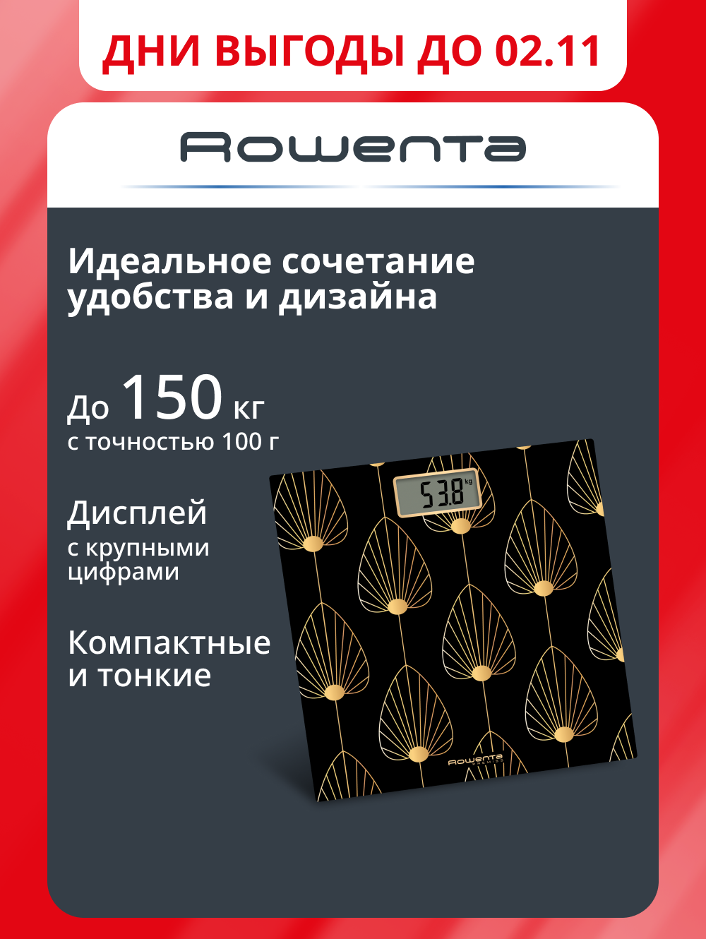 Весы напольные Rowenta Premiss BS1438V0 до 150 кг, с автоотключением, цифровым дисплеем, черные: сравнение цен, характеристики, фото, актуальное наличие и цены.