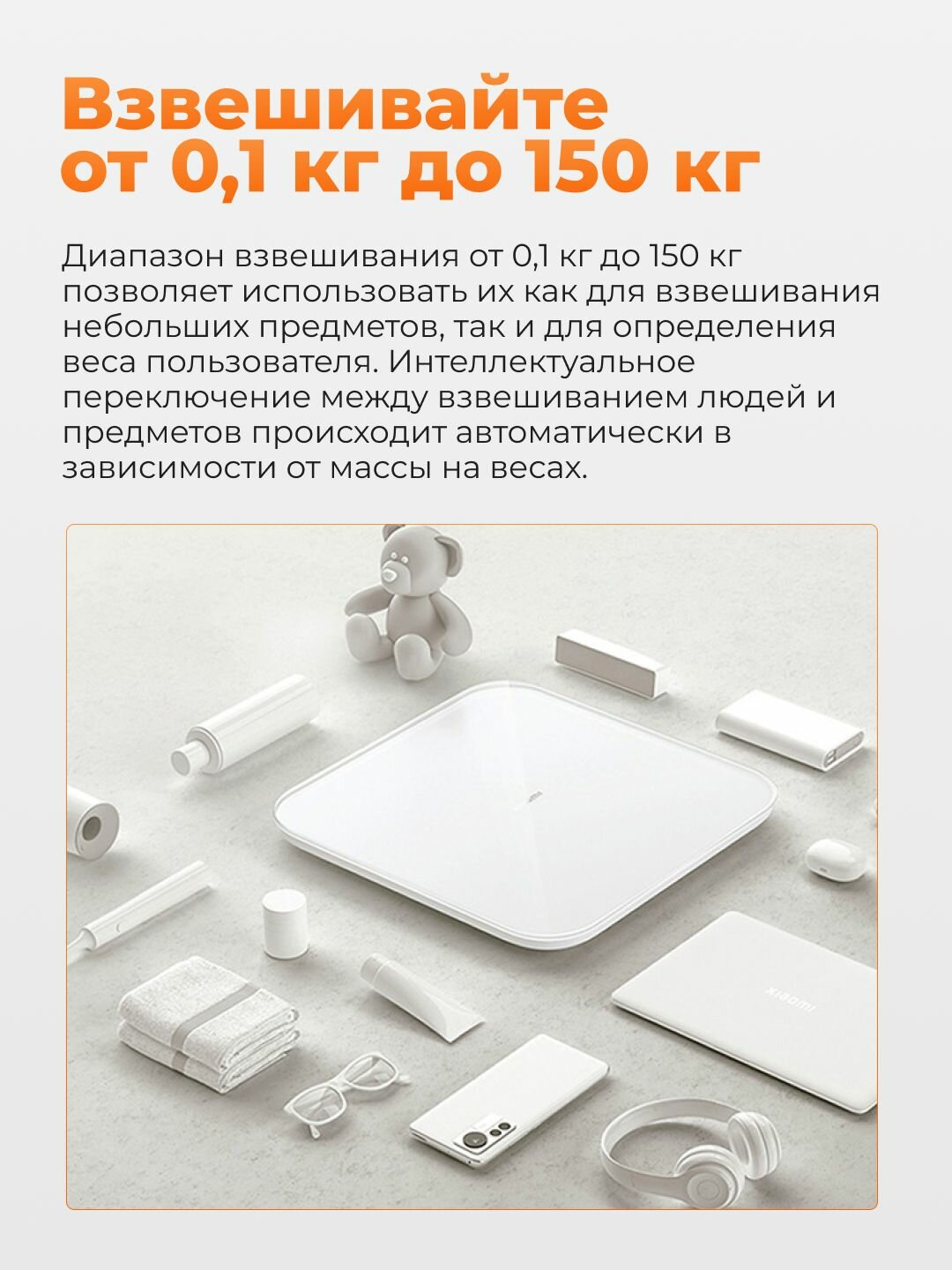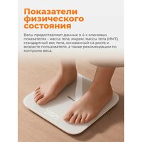 | Дополнительные функции | память, расчет ИМТ (BMI), Автоматическое включение, Автоматическое выключение, Ввод индивидуальных данных, Вес, Динамика веса, Последовательное взвешивание, Светящиеся символы дисплея, Сенсорное управление, Синхронизация данных в интернет, Фиксация веса |