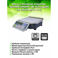 ШТРИХ-ПРИНТ" ФI v.4.5 - удобные фасовочные весы с печатью этикетки в привлекательном обновлённом дизайне. Клавиатура весов и дисплей оператора с целью эргономики размещены внизу, так что оператору удобно вводить номер PLU или код товара (дисплей покупателя отсутствует за ненадобностью). Эти недорогие весы могут использоваться в подсобных помещениях торгового объекта (например, в мясных, салатных и кулинарных цехах) для предварительной фасовки товара и нанесения этикеток на расфасованный товар, а также для фасовки непосредственно в торговом зале.
