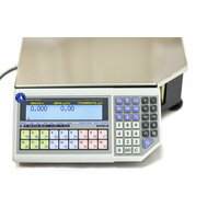 Фасовочные весы с печатью этикетки в привлекательном дизайне. Клавиатура весов и дисплей оператора с целью эргономики размещены внизу, так что оператору удобно вводить номер PLU товара.