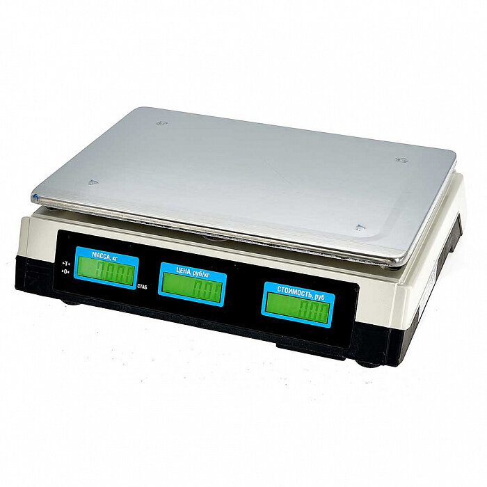 | Функции | автоматическая установка нуля, взвешивание, вычитание массы тары, запоминание цен, отображение цены, расчет и отображение стоимости, расчет сдачи, суммирование стоимости |