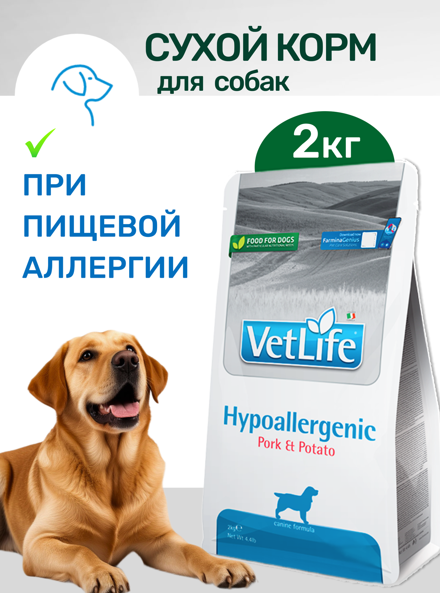 Купить диетический гипоаллергенный корм Farmina для собак Vet Life Hypoallergenic со свининой и картофелем — значит обеспечить щадящее питание при пищевой аллергии и непереносимости, сохраняя здоровье кожи и шерсти питомца.