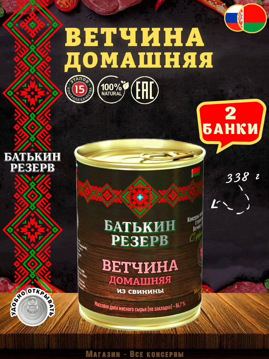 Ветчина домашняя из свинины, Батькин резерв, ТУ, 2 шт. по 338 г: сравнение цен, характеристики, фото, актуальное наличие и цены.