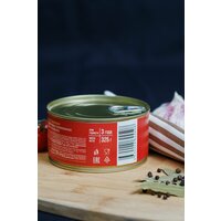 | Состав | свинина, курица, языки свиные, шкурка свиная, стабилизатор Е407, регулятор кислотности, соль пищевая, агент желирующий, фиксатор окраски, ароматизатор пищевой |