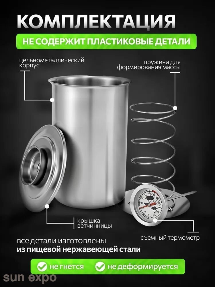 Ветчинница из нержавеющей стали с термометром и прессом,17cm*10cm,Серебро: сравнение цен, характеристики, фото, актуальное наличие и цены.