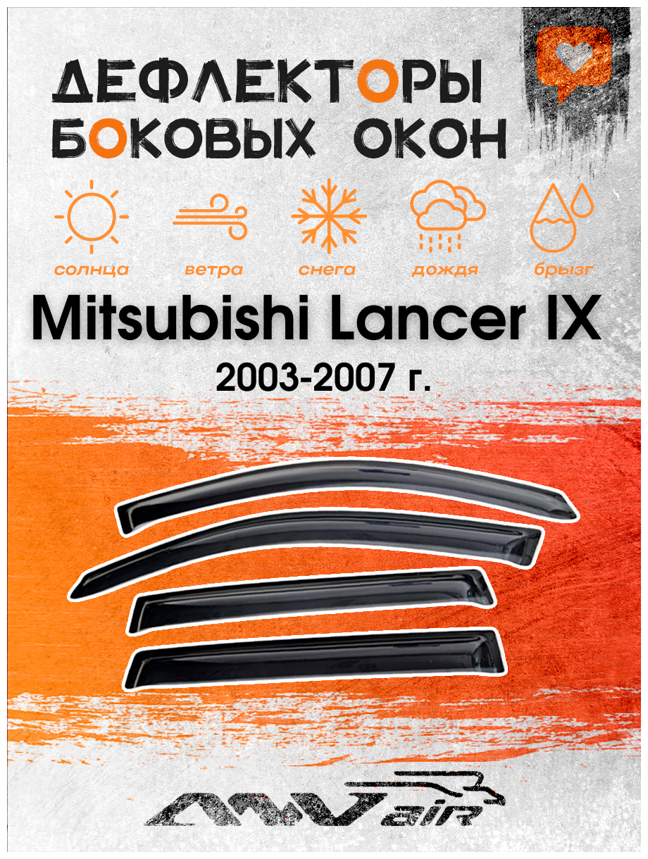 Купить Ветровики окон Mitsubishi Lancer IX 2003-2007 г. / Дефлекторы окон на Мицубиси Ланцер IX 2003-2007 г. с доставкой по всей России.