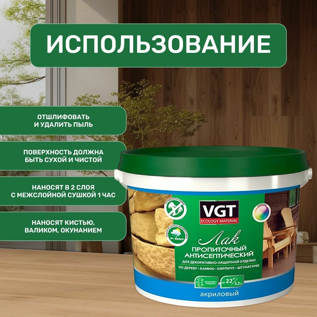 Купить ВГТ / ЛАК пропиточный антисептический для дерева и камня акриловый VGT тик (2.2 кг) с доставкой по всей России. ВГТ / ЛАК пропиточный антисептический для дерева и камня акриловый VGT тик (2.2 кг): сравнение цен, характеристики, фото, актуальное наличие и цены.