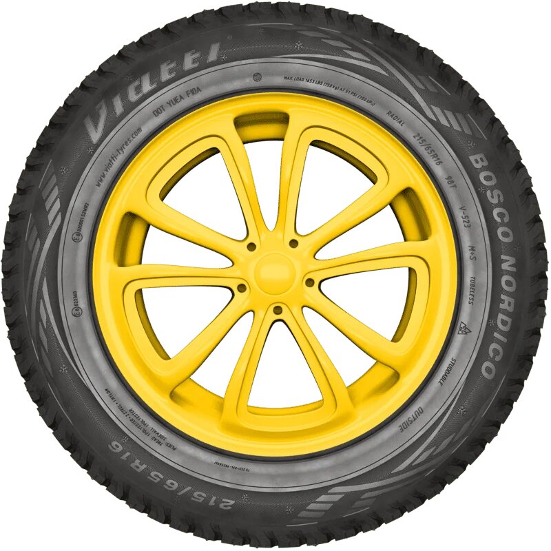 Зимние шины Viatti Bosco Nordico сегодня во многом являются эталоном зимней шипованной резины как для полноразмерных внедорожников и кроссоверов, так и для легковых автомобилей. Модельный ряд шин был разработан совместными усилиями итальянских, немецких и отечественных специалистов с использованием самых современных технологий смешения резины ViaMIX. Как и другие шины Viatti, Bosco Nordico предназначены в первую очередь для российских дорог, а потому их строение и особенности учитывают всю климатическую специфику нашей зимы. Многочисленные испытания с участием профессиональных водителей и автопроизводителей позволили шинам показать превосходный результат проходимости как в глубоком снегу, так и по растопленному реагентами льду на автомагистралях мегаполисов. Благодаря технологии VSS (variable sidewall stiffness — переменное распределение жесткости боковины) шина в буквальном смысле адаптируется под дорожное покрытие — это не только даёт возможность скоростных поворотов, но и ощутимо смягчает удары при движении через ямы, стыки асфальта и прочие неровности дорожного полотна. Асимметричный рисунок протектора и широкий разнос шипов обеспечивает шинам первоклассную износостойкость и значительно снижает уровень шума при движении. Частое расположение ламелей по всей ширине протектора даёт надёжное сцепление с ледяным или влажным покрытием дороги, а повышенная эластичность шашек улучшает продольное сцеплениеВысокая надёжность, проходимость и безопасность шин Viatti Bosco Nordico достигается за счёт уникального рисунка протектора с жёстким центральным ребром и усиленными продольными рядами шашек по технологии HighStab. Это позволяет сохранять большую скорость автомобиля при движении не только по прямой, но и при совершении резких поворотов и иных манёвров, вплоть до самых экстремальных. Улучшенную проходимость автомобиля по глубокому снегу дают специальные углубления в плечевых шашках по технологии SnowDrive. Сопротивление слашплэнингу обеспечивает система Hydro Safe V — пересечение широких продольных канавок с поперечными по площади протектора практически моментально выгоняет снежную кашу из пятна контакта покрышки с дорогой. Viatti Bosco Nordico за счёт многочисленных нюансов, учитывающих все особенности отечественного климата, становятся идеальным выбором для российской зимы. Привычный комфорт вождения сохраняется при любых погодных условиях холодных месяцев, а уникальные технологии обеспечат вам необходимую на зимней дороге безопасность. Технология VRF – шины адаптируются под дорожное покрытие, поглощает удары при преодолении неровностей, позволяет уверенно проходить скоростные повороты. Технология Hydro Safe V – широкие продольные канавки, пересеченные поперечными, улучшают сопротивление слашплэнингу (скольжению по слякоти и снежной каше). Шина эффективнее разрезает слякоть и вытесняется ее из пятна контакта с дорогой. Усиленный ряд плечевых шашек с наружной стороны рисунка повышает уровень устойчивости, управляемости шин и безопасность вождения. Асимметричный рисунок протектора с увеличенным количеством шашек и оптимально просчитанной схемой расстановки шипов обеспечивают наилучшее сцепление на зимней дороге, износостойкость и снижение уровня шума. Повышенная эластичность протектора, а также ламели, часто расположенные по всей его ширине, ул