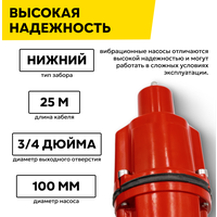 Купить Вибрационный насос Ресанта НВ-25Н, высота подъема 75м, нижний забор воды, кабель 25м с доставкой по всей России.