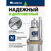 - Необходимые аксессуары в комплекте — трос для установки и хомут для подключения шланга прилагаются к насосу.