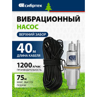 Вибрационный насос Сибртех СВН300-40 99304, имеющий мощность 300 Вт и производительность до 1200 л/ч, с верхним забором жидкости и кабелем длиной 40 м, легко справляется с перекачкой чистой воды из водоемов, колодцев, резервуаров и затопленных помещений, обеспечивая напор до 75 м. Оптимален для подачи воды в системы полива и водоснабжения на даче, в том числе в доме высотой в 2-3 этажа.