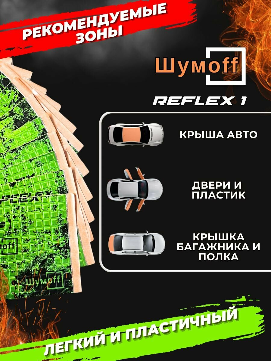 Виброизоляция для автомобиля Шумофф Reflex 1 (15 листов 1,6мм) 37,5х23см шумоизоляция для авто облегченная: сравнение цен, характеристики, фото, актуальное наличие и цены.