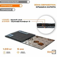 Применение шумофф, шумoff Jack – отличная возможность добиться высоких показателей обесшумливания при меньшей толщине материала, а значит, и при меньшем весе. КМП материала толщиной 2 мм этой линейки сопоставимо с показателями трехмиллиметрового вибропоглотителя шумофф, шумoff М3.
