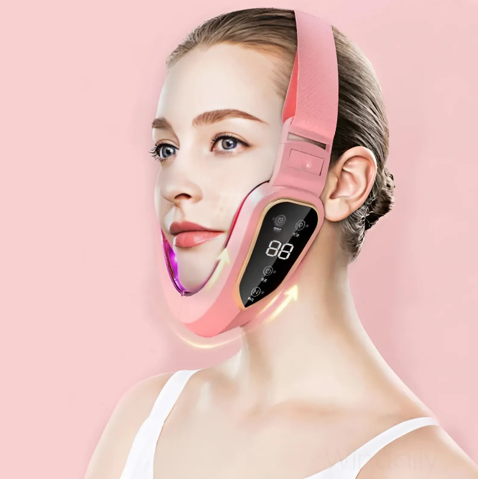 Купить Вибромассажер для улучшения овала лица с вибрацией и светотерапией. Массажер от второго подбородка и отеков с 12 уровнями микровибрации розовый с доставкой по всей России.
