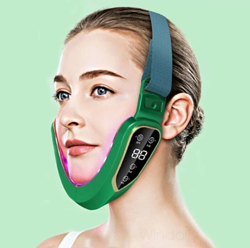 Вибромассажер для улучшения овала лица с вибрацией и светотерапией, Массажер от второго подбородка, темно-зеленый