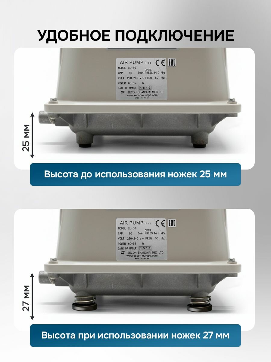 ✅Виброопоры для компрессоров Secoh EL-60/80/100 - эффективное решение для бесшумной работы септика, полностью устраняющее гул и вибрацию (100% эффективность). Специально разработанные для мембранного компрессора Secoh EL-60/80/100 они продлевают срок службы мембраны двигателя, снижают шумовую нагрузку до минимальных dB и предотвращают износ деталей от вибрации. ✅Антивибрационные ножки для компрессора из нержавеющей стали особенно важны для правильной работы аэратора септика на даче или в частном доме, а также для аэрации прудов и аквариумов, где важно сохранить живые аэробные бактерии и обеспечить качественную чистку сточных вод без использования химии. Трубчатая конструкция виброопор надежно защищает компрессор и электромагнитный клапан от повреждений, что делает их идеальным решением для систем с биоактиватором. ✅Применяются в различных типах очистителей - как с аэробными средствами, так и с анаэробными микробами, обеспечивая стабильную работу дачного туалета дома и эффективную очистку жидкости. Гарантируют долговечность оборудования и комфортную эксплуатацию системы биологической очистки.