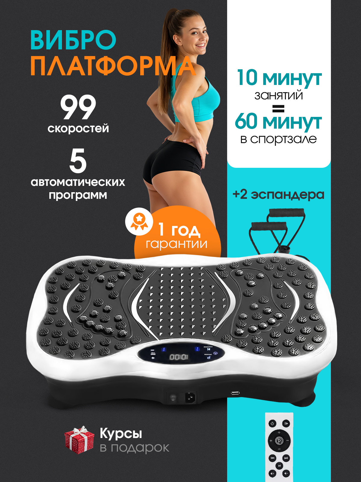 Виброплатформа для похудения, тренажёр для занятий дома, 99 скоростей, эспандеры 2 шт, белая: сравнение цен, характеристики, фото, актуальное наличие и цены.