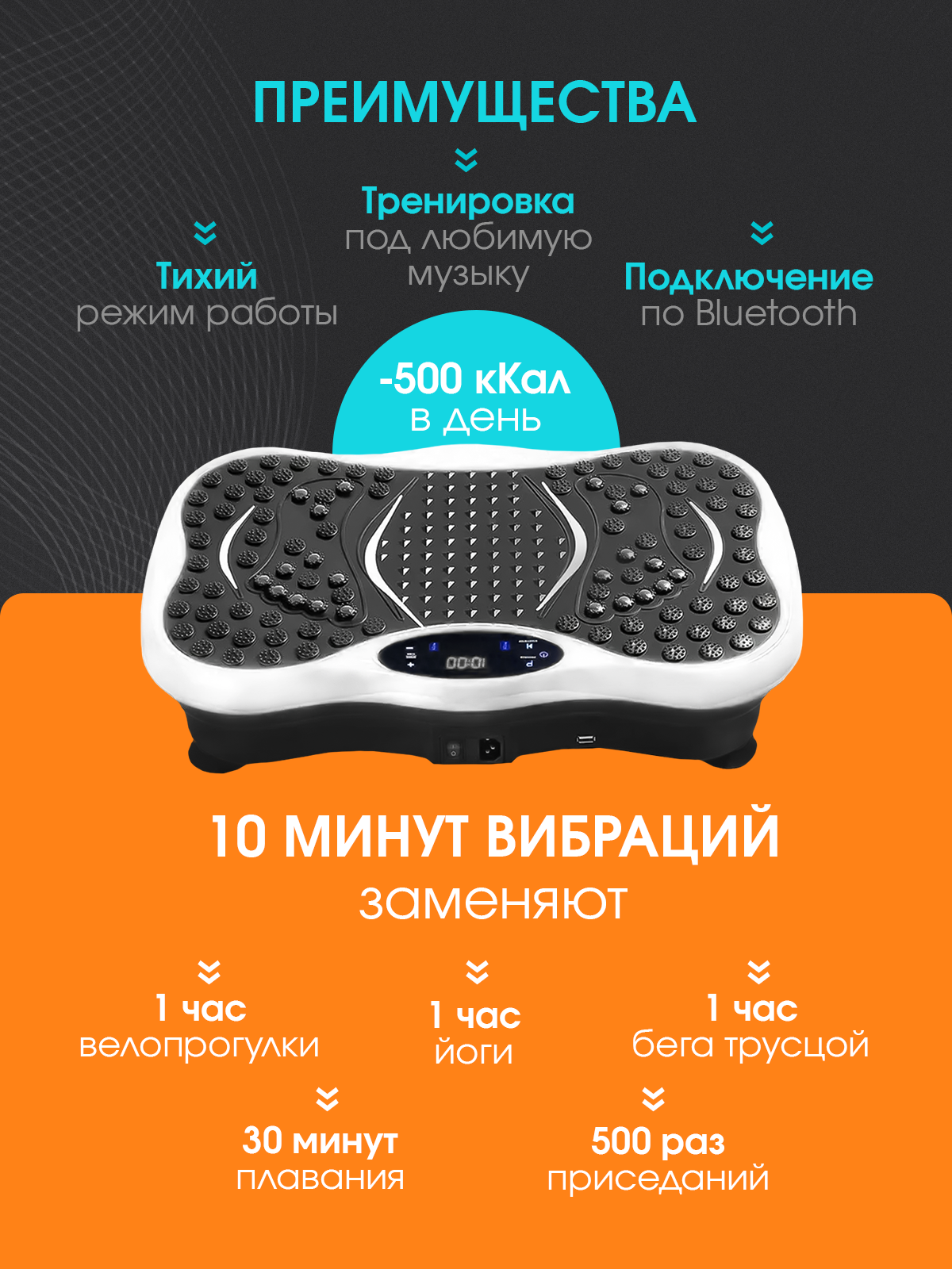 дисплей, программы тренировок, пульт ДУ, регулировка амплитуды колебаний, регулировка частоты вибрации, ручное управление, таймер, эспандеры