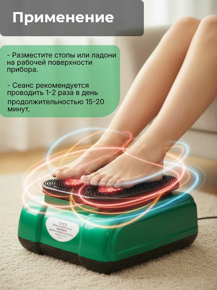 Прибор для стимуляции рефлекторных зон «Ци Сюэ» TIENS TQ-D30 Объедините древнюю мудрость восточной медицины с современными технологиями! Этот инновационный прибор мягко воздействует на биологически активные точки стоп и ладоней, восстанавливая энергетический баланс вашего организма. Как это работает: Высокочастотные вихревые импульсы бережно стимулируют рефлекторные зоны, связанные с внутренними органами. Это помогает: - Активизировать циркуляцию жизненной энергии Ци, - Улучшить насыщение крови кислородом, - Запустить естественные процессы восстановления, - Гармонизировать общее состояние организма. Преимущества: • Безболезненная стимуляция акупунктурных точек, • Улучшение микроциркуляции в конечностях, • Глубокое расслабление и снижение стресса, • Активация энергетических меридианов, • Удобство домашнего использования. Показания: - Хроническая усталость и недостаток энергии, - Нарушения периферического кровообращения, - Стресс и нервное напряжение, - Общее оздоровление организма. Применение: Разместите стопы или ладони на рабочей поверхности прибора. Сеансы по 15–20 минут 1–2 раза в день. Противопоказания: - Послеоперационный период, - Беременность, - Опухоли любой этиологии, - Инфекционные заболевания, - Наличие кардиостимулятора, тяжелые сердечно-сосудистые патологии, - Болезни крови, включая нарушения свертываемости. Технические данные: - Максимальная нагрузка: 120 кг, - Гарантия: 12 месяцев, - Производитель: Tiens. «Ци Сюэ» TIENS — это ваш надежный помощник для восстановления энергии и гармонии в условиях современной жизни. Перед использованием ознакомьтесь с инструкцией.