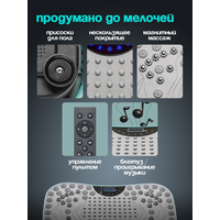 Компактный электромассажер с эргономичным дизайном (нагрузка до 120 кг) управляется с помощью пульта, музыка подключается через bluetooth-соединение.