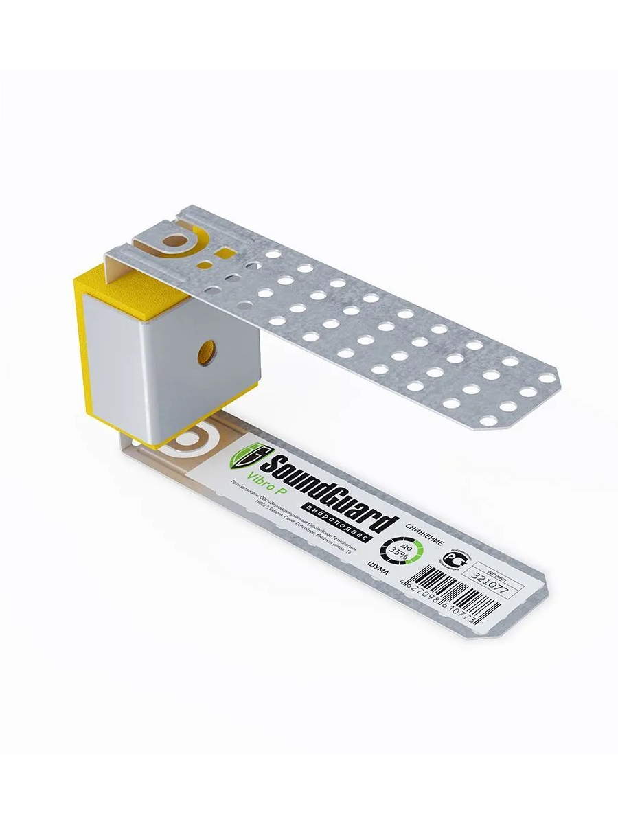 SoundGuard Vibro P - Универсальные виброизоляционные крепления на основе эластомера. Разработанная нашими инженерами концептуально новая система крепежа. Не имеет аналогов, снижает трудозатраты при монтаже до 50%. При этом данная модель Саундгард Вибро П не уступает по своим вибро изоляционным характеристикам моделям конкурентов. Состоит из цельнометаллического каркаса и П-образного усиленного монтажного элемента. Рабочей основой виброизоляционных креплений SoundGuard серии Vibro является упругий элемент из эластомера. Монтировать одноуровневый или двухуровневый металлический каркас на потолке необходимо строго по технологии возведения данных конструкций. Подвесы необходимо устанавливать с одинаковым шагом, сетка каркаса должна получится 600х400 мм, после чего обязательно извлечь все крепления направляющих профилей. Эффективная виброразвязка со строительной конструкцией. Новое техническое решение. Легкость монтажа и экономичность. Интеграция со стандартными каркасными системами. Применяются в качестве силового виброизоляционного крепления для устройства звукоизолирующих вибро развязанных конструкций потолков и стен. Состав: Цельно-металлический каркас, металлический П-образный профиль - 0,9 мм, полиуретановый микропористый эластомер. Максимальная нагрузка на 1 крепление при монтаже на потолок 15 кг. Вибрация — это часто неизбежный аспект при строительстве, но благодаря нашим монтажным стеновым виброподвесам вы можете значительно сократить этот эффект. Обладая высокой эффективностью звукоизоляция и шумоизоляция, длительным сроком службы, этот потолочный виброподвес саундгард позволит вашей звукоизолированной системе работать на полную мощность.