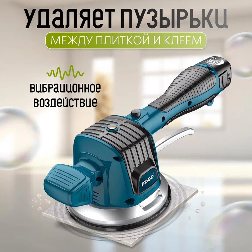 Виброприсоска аккумуляторная FOGO 600 Вт обеспечивает высокую мощность и эффективность в работе. С частотой вибрации 12000 об/мин и емкостью аккумулятора 2000 мАч, эта виброприсоска гарантирует быстрое и качественное удаление пузырьков между плиткой и клеем.