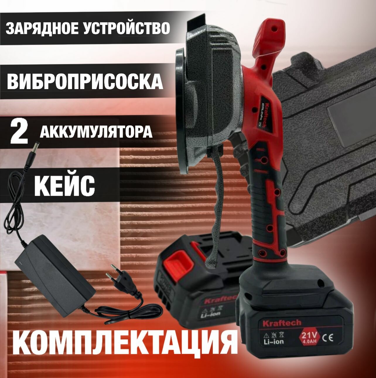 Купить Виброприсоска для укладки плитки аккумуляторная Kraftech TIL-21PRO с доставкой по всей России. Виброприсоска для укладки плитки аккумуляторная Kraftech TIL-21PRO: сравнение цен, характеристики, фото, актуальное наличие и цены.