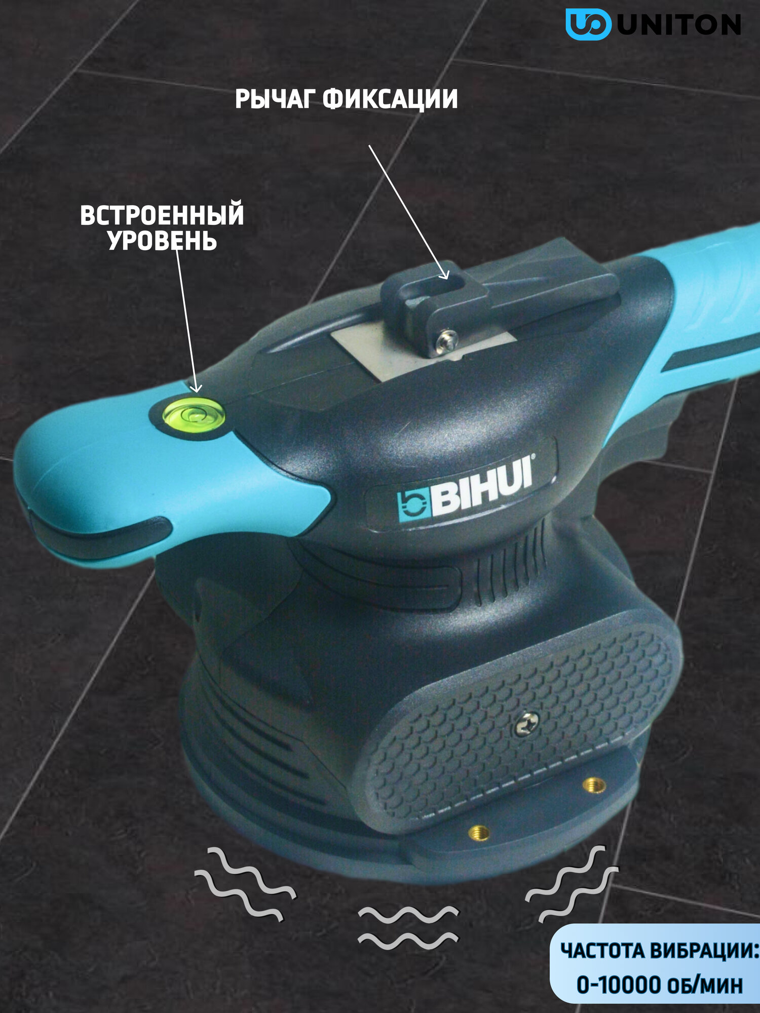 Вибрационная присоска (виброприсоска) BIHUI – это многофункциональная машинка для укладки, выравнивания с вибрацией и переноски плитки. Специально разработана для манипуляций и подъёма плитки с шероховатой поверхностью или с небольшим рельефом, не оставляет пятен на плитке. Используется для переноски и установки напольной и настенной плитки, что значительно повышает эффективность работы. Это устройство 2 в 1: прискока и минивибратор. Предназначена для уплотнения основания и удаления воздуха из-под плитки во время укладки. Это обеспечивает идеальную адгезию плитки к полу или стене. Небольшой размер и легкий вес делает данный инструмент очень удобным в использование. Постоянная и равномерно распределенная вибрация позволяет не повредить плиту, даже если в ней были выполнены отверстия или разрезы больших размеров.