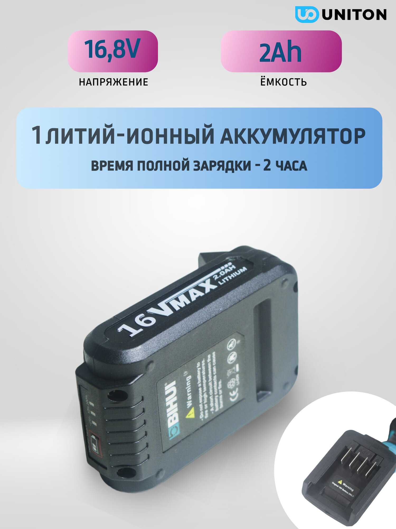 Работает виброприсоска от встроенного литий-ионного аккумулятора (Li-ion) 16,8V, 2000mAh. На корпусе есть индикатор уровня заряда.