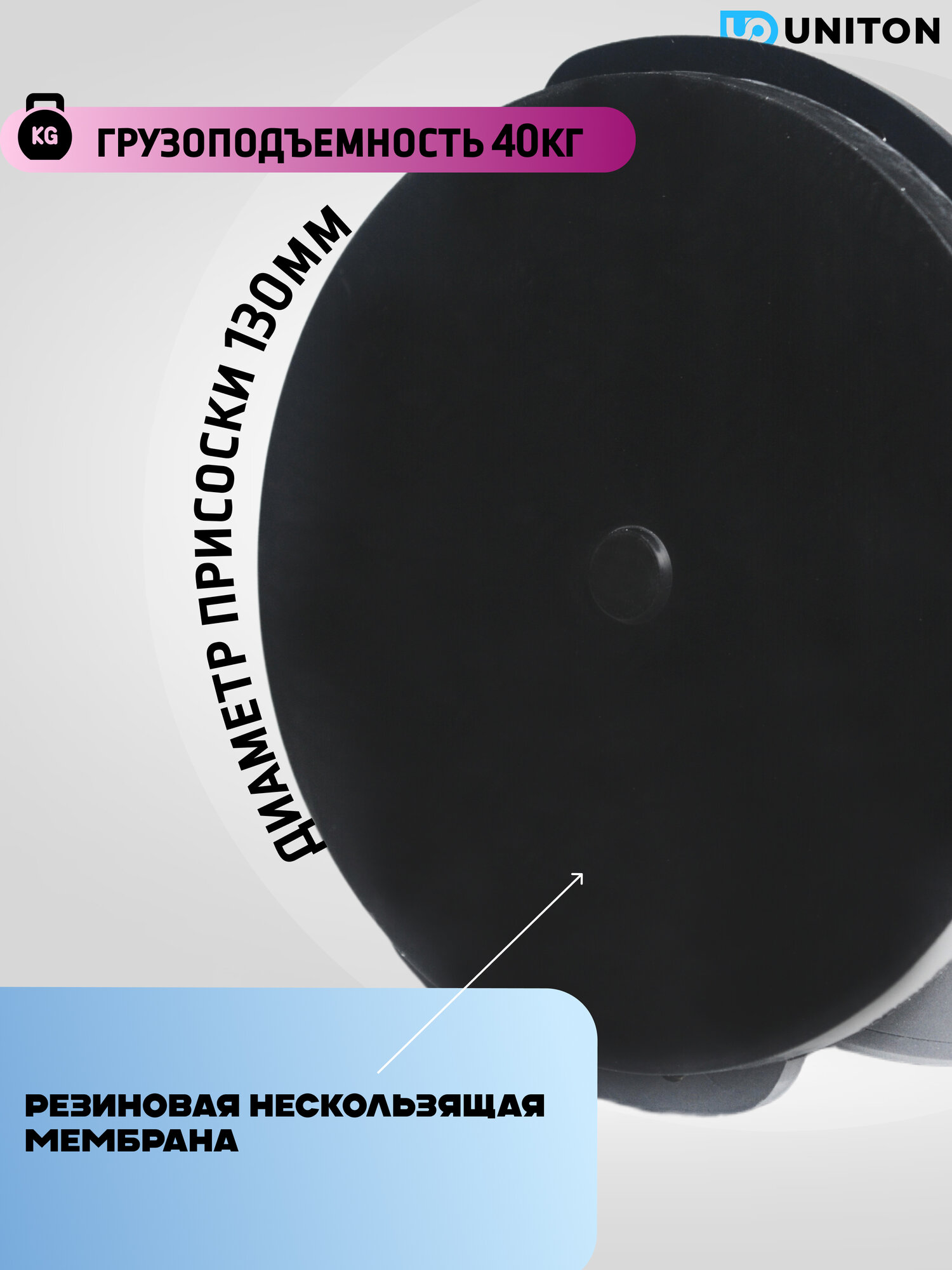 Присоска представляет собой чашу из прочного пластика, внутри которой помещена прочная резиновая нескользящая мембрана, обеспечивающая разряжение необходимое для надежного удержания изделий весом до 40кг. Диаметр чаши 130мм. Разряжение в ней (вакуум) создается и снимается одним нажатием рычажка. Изготавливается из прочного технического полимера. Эргономичная рукоятка разработана для большего удобства и безопасности работ.