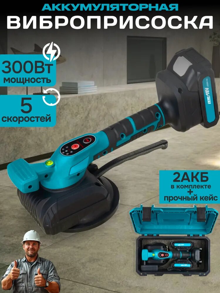 Виброприсоска для укладки плитки аккумуляторная 2 АКБ 24 В — инструмент, который станет незаменимым помощником как для профессионалов, так и для любителей ремонта. Эта виброприсоска позволяет быстро и качественно укладывать плитку и керамогранит, обеспечивая надежное сцепление с поверхностью и удобство в использовании.