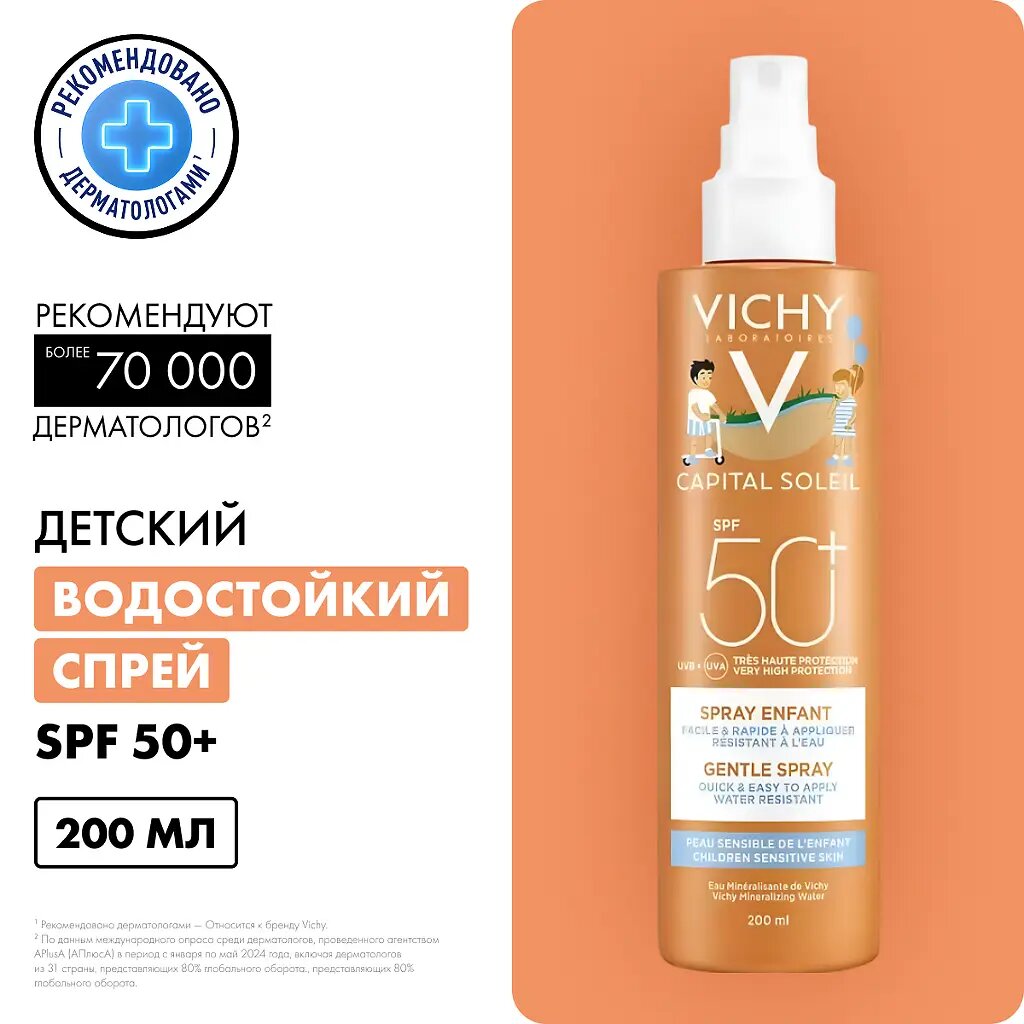 Купить Vichy Capital Soleil Солнцезащитный легкий флюид-спрей для детей водостойкий SPF50+ 200 мл 1 шт с доставкой по всей России. Vichy Capital Soleil Солнцезащитный легкий флюид-спрей для детей водостойкий SPF50+ 200 мл 1 шт: сравнение цен, характеристики, фото, актуальное наличие и цены.