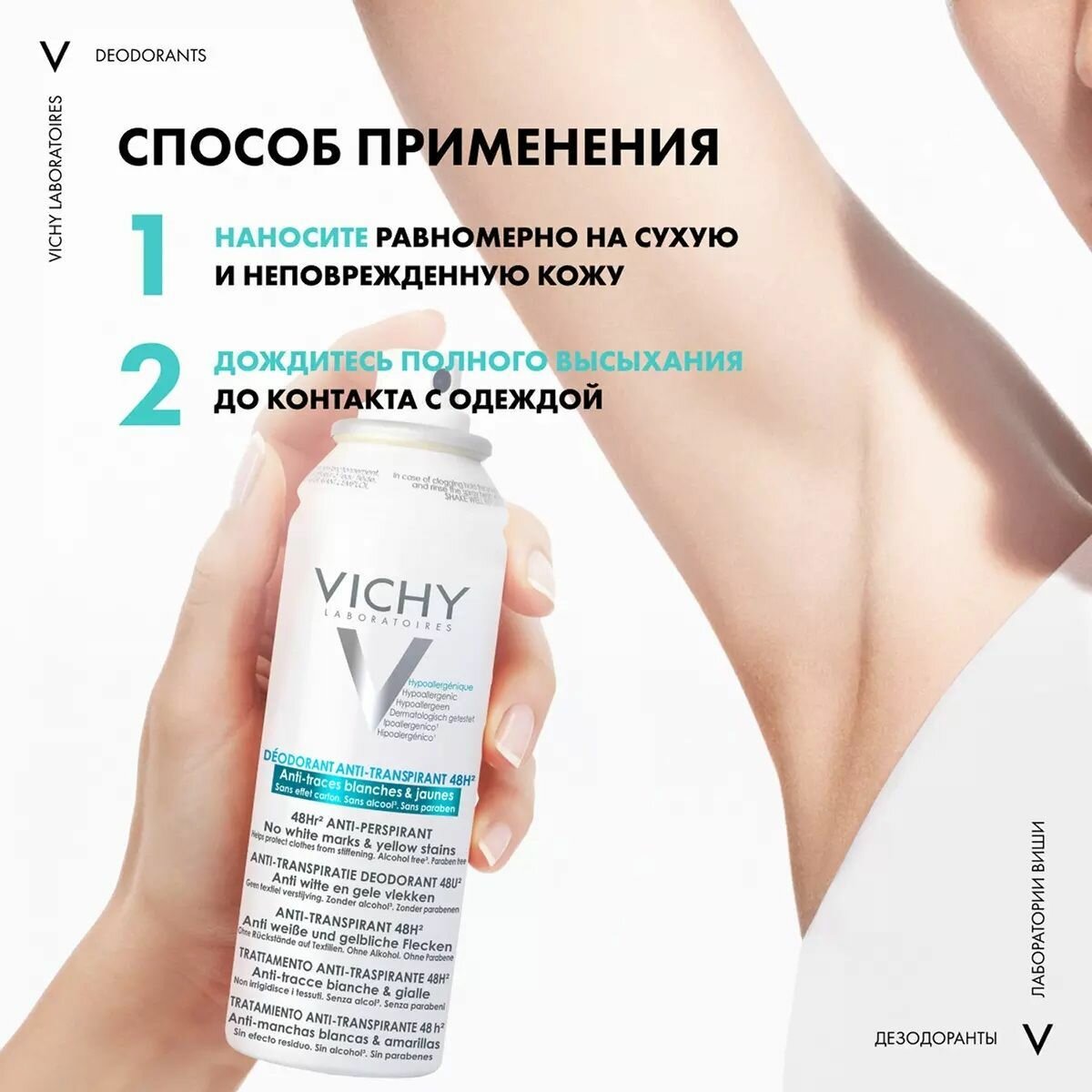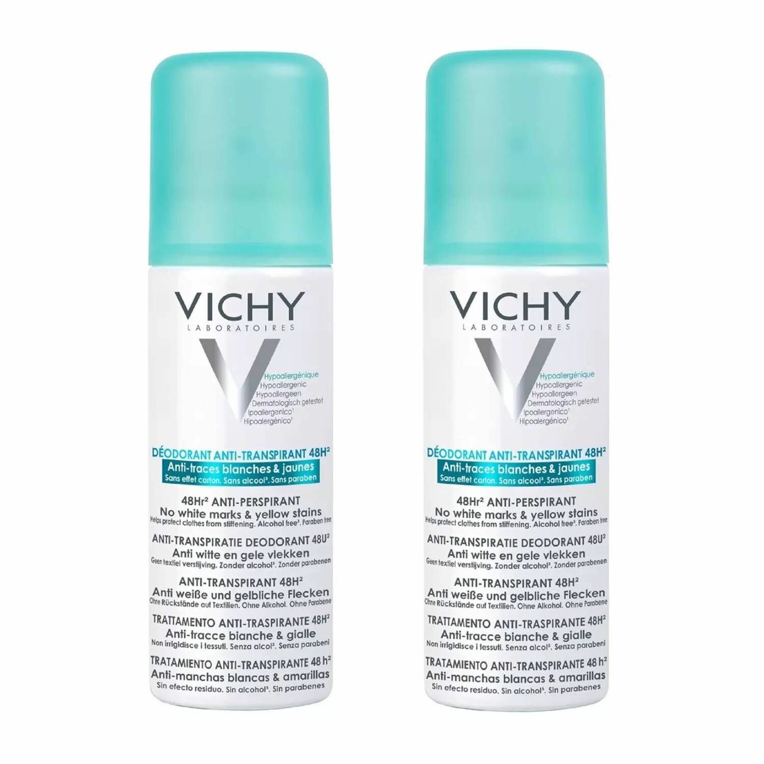 Vichy Дезодорант-антиперспирант против белых и желтых пятен для защиты на 48 часов, 2 х 125 мл: сравнение цен, характеристики, фото, актуальное наличие и цены.