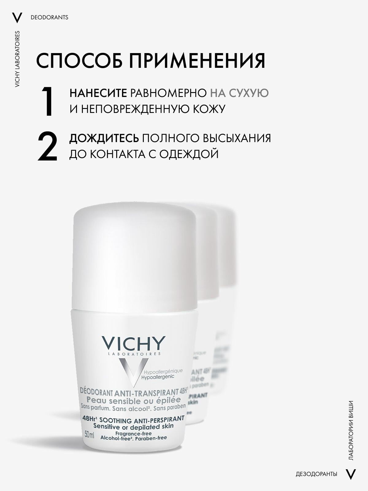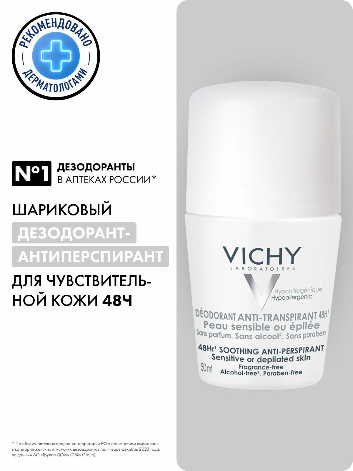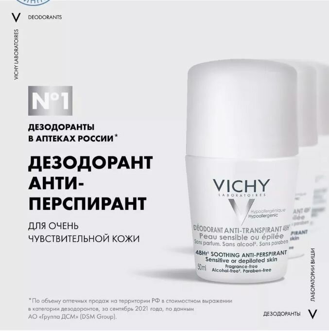Vichy Шариковый дезодорант для чувствительной кожи с защитой 48 часов, роликовый антиперспирант от запаха пота для женщин и мужчин, 50 мл,3 шт: сравнение цен, характеристики, фото, актуальное наличие и цены.