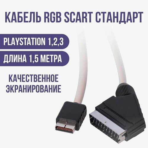 Видео - кабель RGB - SCART для игровой консоли Sony PlayStation 1/2/3. Синхронизация выполнена по Composite. Подходит абсолютно для для любых приставок PS1, PS2, PS3 и любых телевизоров, как кинескопных, так и современных ЖК или плазма имеющих вход SCART RGB.