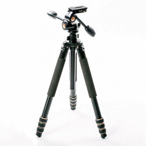 Алюминиевый четырехсекционный штатив для фото- и видеокамер оснащен надежными регулируемыми ножками с резиновыми накладками и панорамной 3D-головой, оборудованной быстроразъемным соединением. Ножки фиксируются с помощью надежных цанговых зажимов.