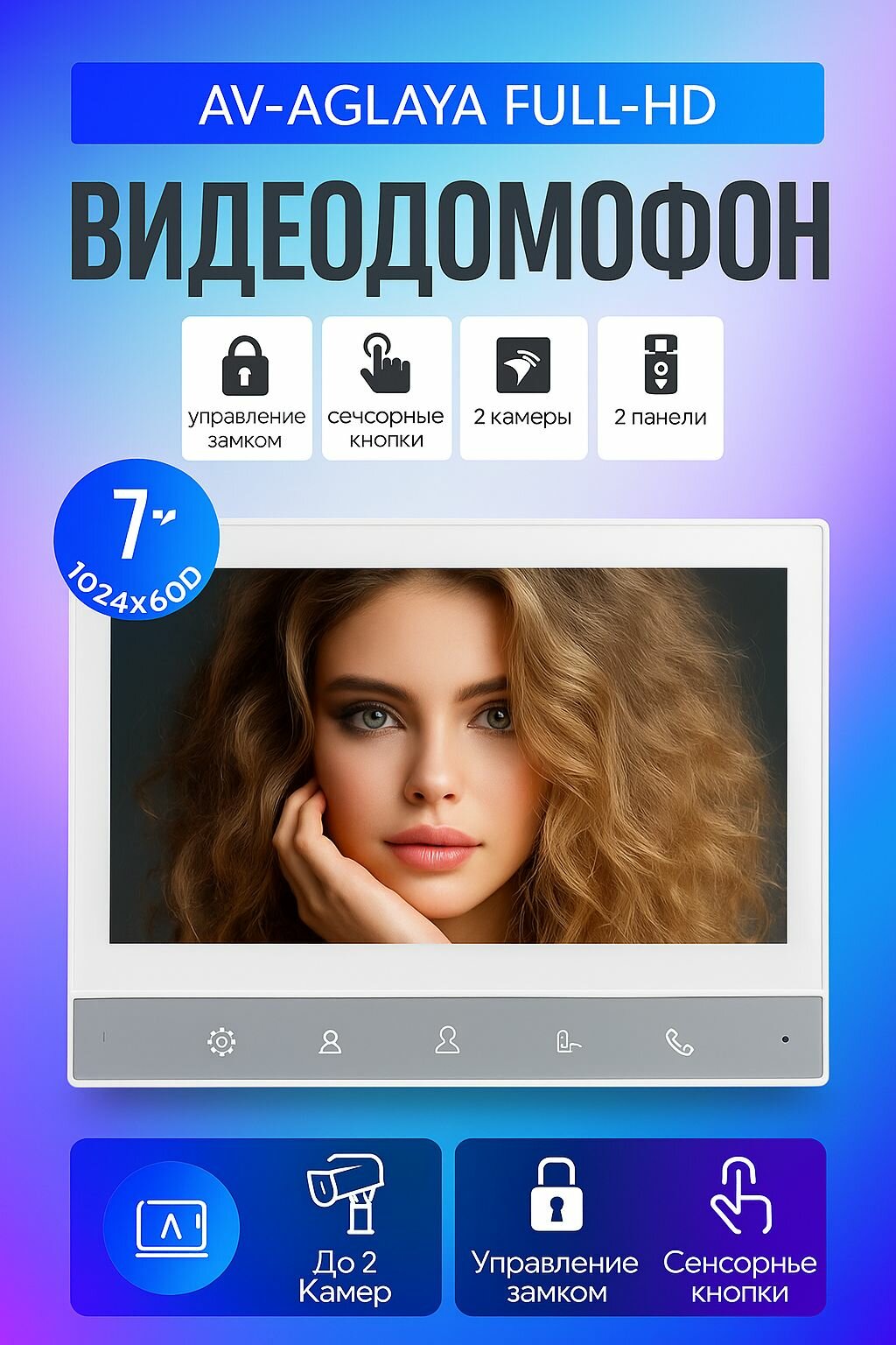 Видеодомофон Aglaya, белый, экран 7 дюймов, Full HD разрешение, сенсорное управление: сравнение цен, характеристики, фото, актуальное наличие и цены.