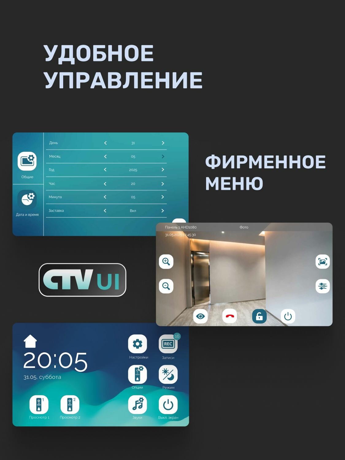Видеодомофон CTV M3722, 7″, AHD, сенсорный экран, встроенная память, черный: сравнение цен, характеристики, фото, актуальное наличие и цены.