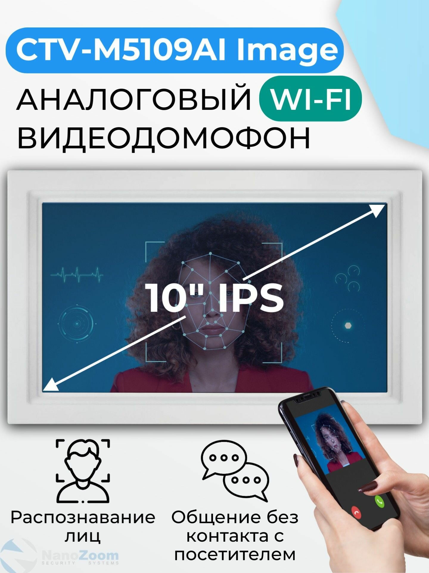 Купить Видеодомофон для квартиры CTV M5109AI Image White — интерьерный Wi-Fi монитор 10″ для дома или офиса с искусственным интеллектом, аналоговый видеомонитор с AI-функциями (распознавание, детекция) с доставкой по всей России.