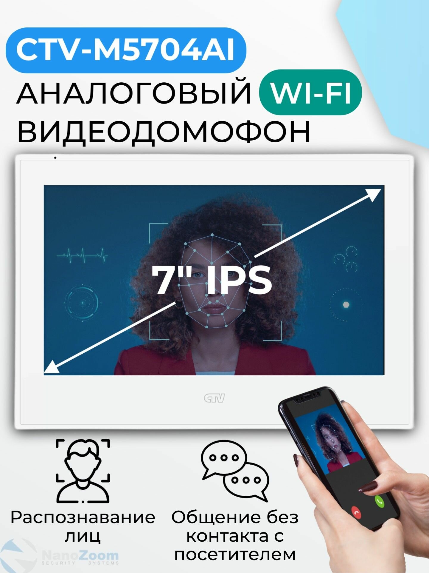 Видеодомофон для квартиры CTV M5704AI White — Wi-Fi монитор 7″ для дома или офиса с искусственным интеллектом, аналоговый видеомонитор с AI-функциями (распознавание, детекция)