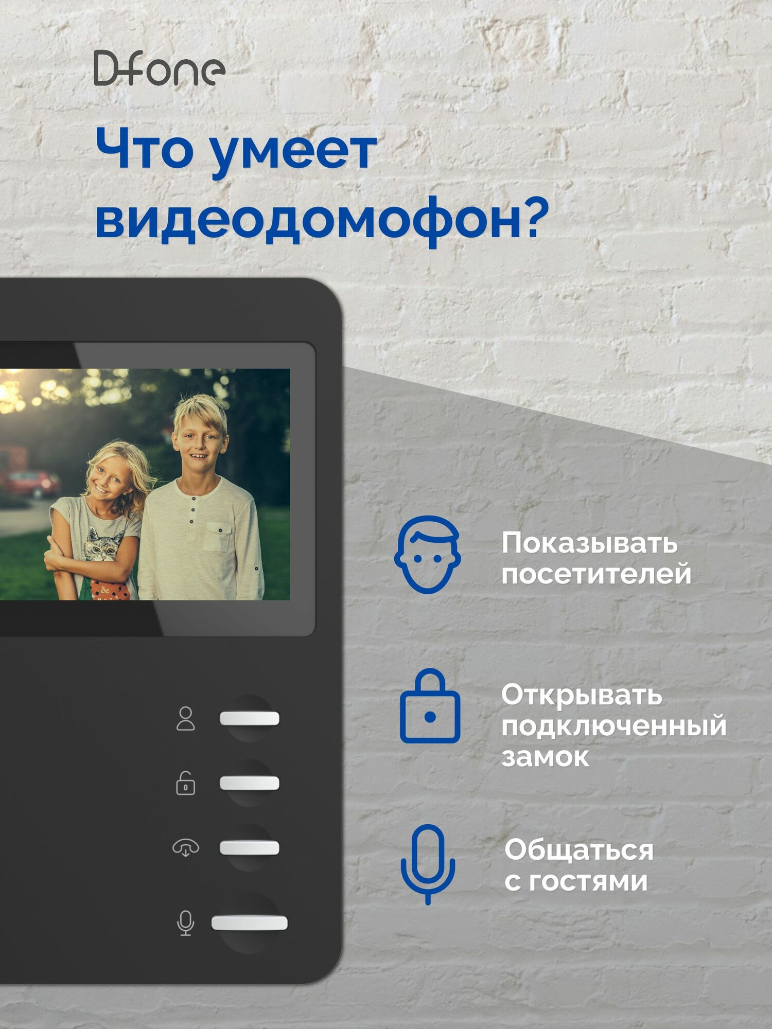 Видеодомофон для квартиры и частного дома D-fone Mini 4 Plus, черный: сравнение цен, характеристики, фото, актуальное наличие и цены.