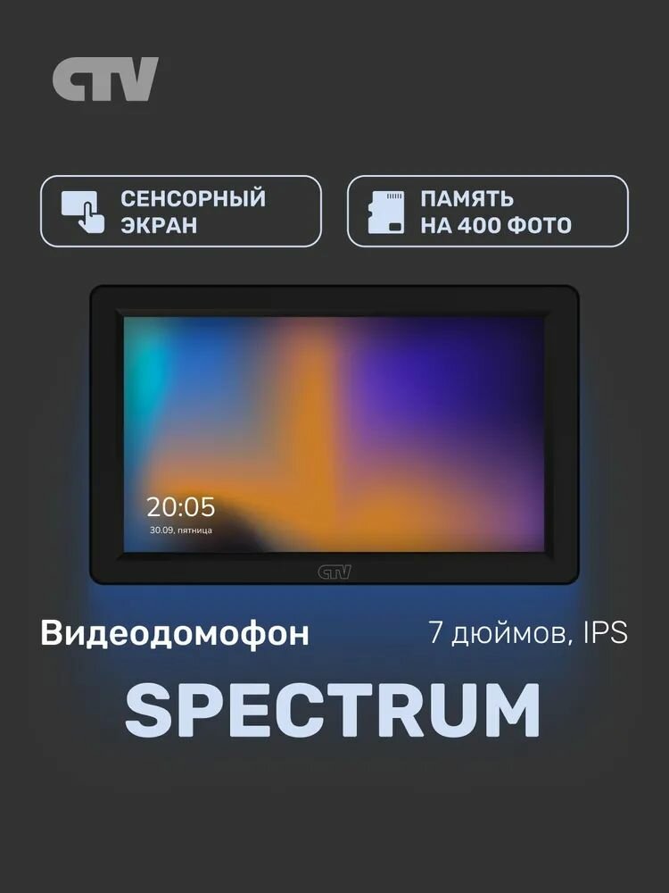 CTV-M3722 Spectrum — видеодомофон с цветным 7-дюймовым дисплеем для организации контроля доступа в помещение. Устройство поддерживает подключение двух видеопанелей и обеспечивает качественную передачу изображения.