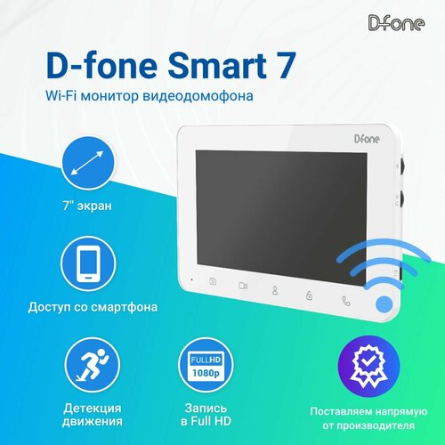 Видеодомофон с Wi-Fi для квартиры D-fone Smart 7 (SM741 W, Белый), поддержка Full HD, TFT дисплей 7″ 1024×600, с записью по детекции движения и удаленным доступ со смартфона: сравнение цен, характеристики, фото, актуальное наличие и цены.