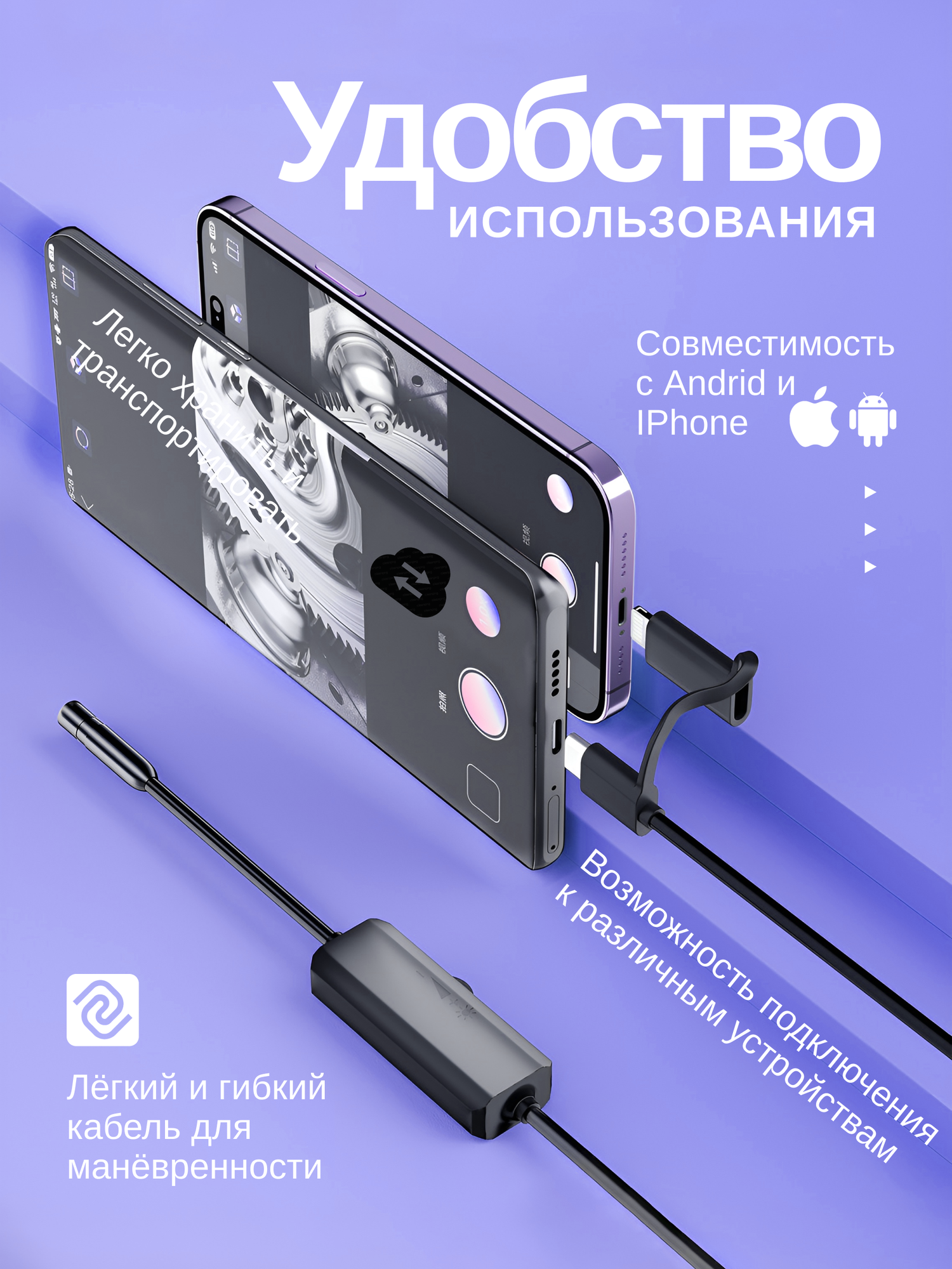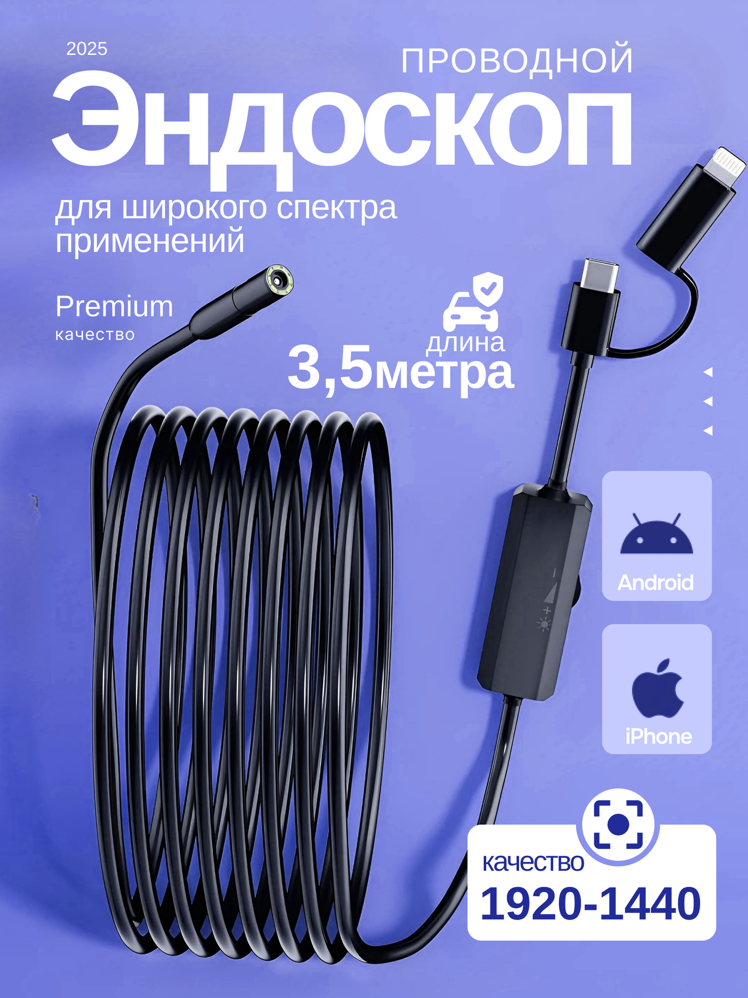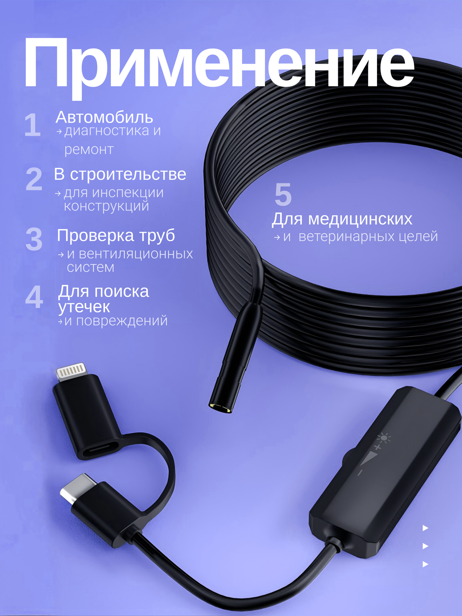 Видеоэндоскоп для смартфона; Эндоскоп жесткий шнур для телефона Android, IPhone, 3,5 метра, Type-S, Lighting, водонепроницаемый: сравнение цен, характеристики, фото, актуальное наличие и цены.