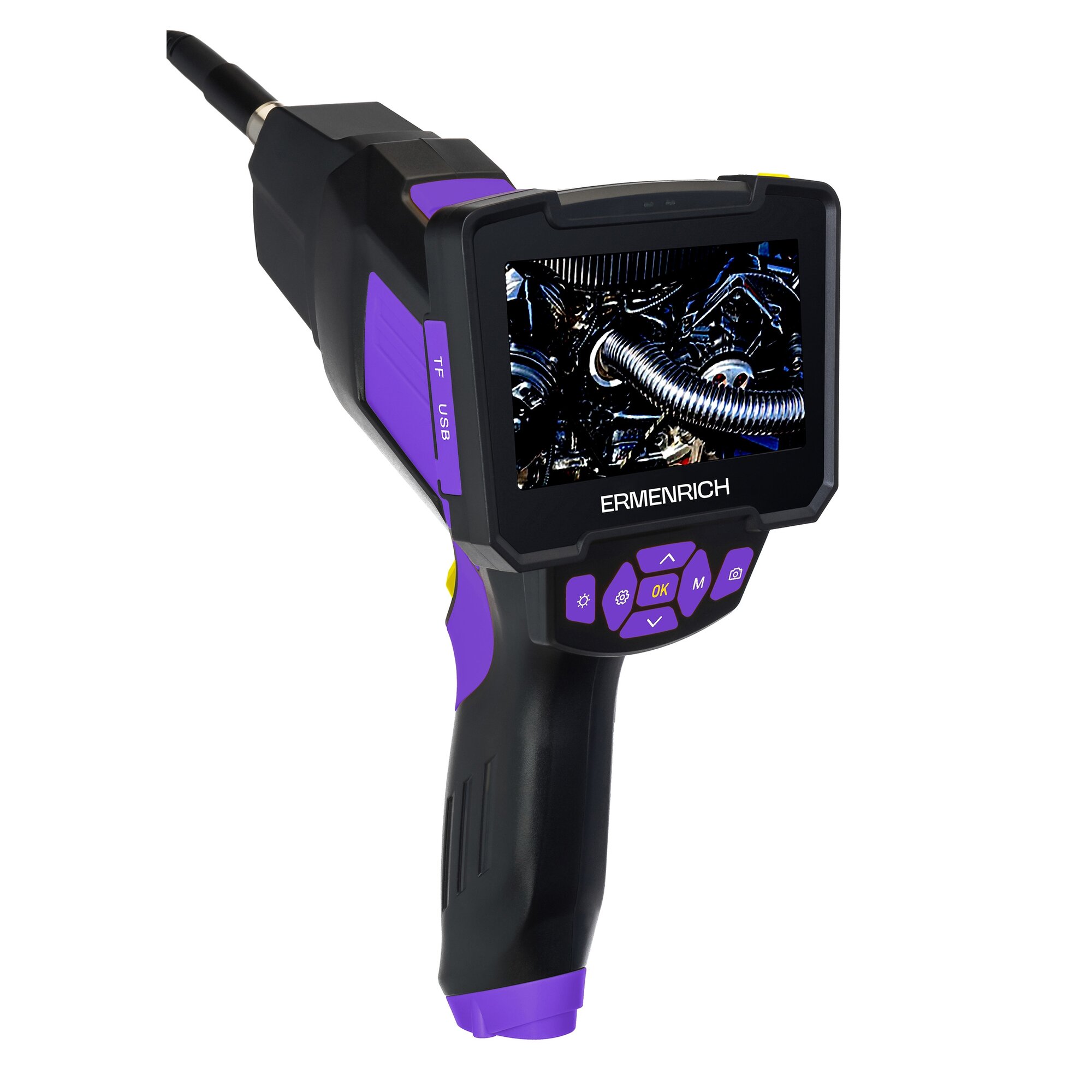 Эндоскоп Ermenrich Seek VE50 с одной камерой прямого обзора и полужестким кабелем длиной 10 м. Диаметр камеры всего 5,5 мм, и она легко проходит в труднодоступные места. Угол обзора составляет 70°, благодаря подсветке 6 светодиодами изображение получается четким. Эндоскоп рекомендуется использовать для диагностики канализационных и вентиляционных труб, осмотра стен на наличие трещин, выявления неисправностей в промышленном оборудовании. Степень герметичности камеры IP67, поэтому можно осматривать объекты под водой, например, при аварийном ремонте канализации или водопровода.