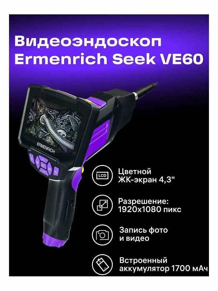 Купить Видеоэндоскоп Ermenrich Seek VE60 83839, тепловизор, фиолетовый с доставкой по всей России. Видеоэндоскоп Ermenrich Seek VE60 83839, тепловизор, фиолетовый: сравнение цен, характеристики, фото, актуальное наличие и цены.