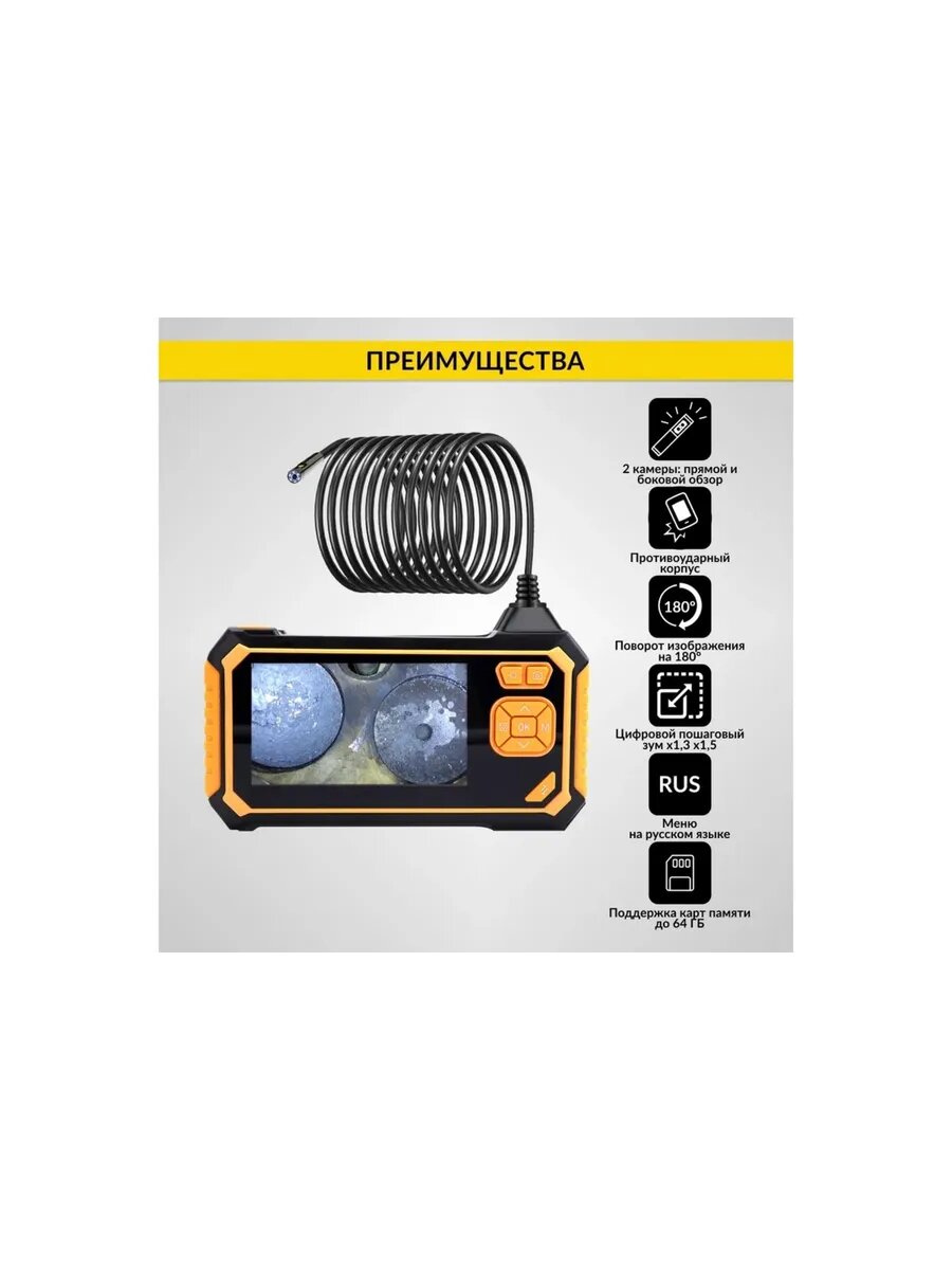Видеоэндоскоп iCartool IC-V117 — это профессиональное диагностическое устройство, созданное для точных инспекций в труднодоступных местах. Оборудован двумя камерами: основной Full HD 1920x1080 пикселей и дополнительной, расположенной под углом 90 градусов, что позволяет детально инспектировать впускные и выпускные клапаны двигателей внутреннего сгорания. Ключевые особенности: - Высокое разрешение: основная камера предоставляет четкое изображение мельчайших повреждений. - Двухкамерная система: обеспечивает всестороннюю проверку сложных узлов. - Полужесткий зонд: диаметр 5.5 мм и длина 3 метра с защитой IP67 для надежной работы в любых условиях. - Удобный дисплей: 4.3-дюймовый цветной LCD с полным обзором экрана. - Дополнительные функции: LED-подсветка из 7 светодиодов, цифровой зум, поворот изображения и поддержка карт памяти до 64 ГБ. - Оптимальное фокусное расстояние: основной камеры от 2 до 10 см, боковой камеры от 2 до 5 см при широком угле обзора 78 градусов. iCartool IC-V117 идеально подходит для профессионалов, нуждающихся в надежном средстве диагностики, и обеспечивает отличное решение для проведения инспекций в труднодоступных и критически важный местах. Особенности: Фокусное расстояние фронтальной камеры от 2 до 10 см Фокусное расстояние боковой камеры от 2 до 5 см LED подсветка из 8+1 белых светодиодов с 3-мя режимами яркости Поворот изображения на экране, цифровой зум Встроенный аккумулятор объемом 2600 мАч позволяет непрерывно работать до 3х часов Для сохранения полученных результатов используется TF карта памяти (опция) Характеристики: Элементы питания встроенный аккумулятор Количество и напряжение элементов питания нет Диаметр камеры 5.5 мм Max угол обзора 78 град Фокусное расстояние 20-100 мм Размер дисплея 4.3 дюйм Разрешение 1920х1080 px Длина зонда 3 м Возможность работы со смартфоном нет Время работы на одном заряде 3 ч Две камеры - фронтальная и боковая, ориентированная под углом 90° Зонд полужесткий, с эффектом памяти формы, диаметром 5.5 мм Цветной LCD дисплей 4,3‘' имеет угол обзора 360°
